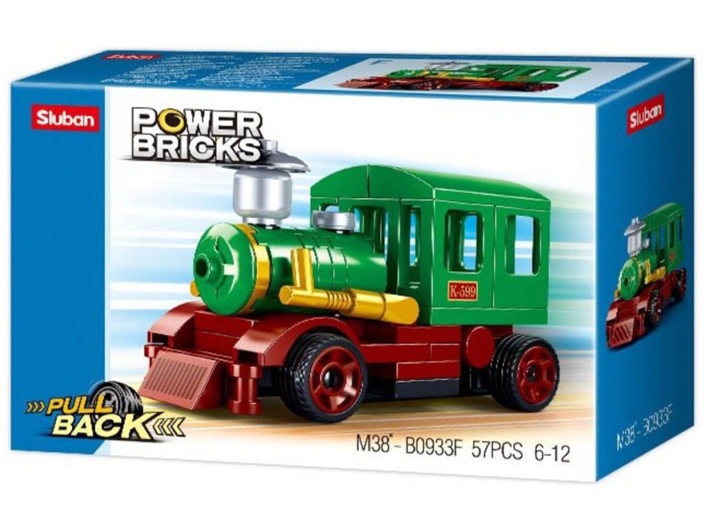 Natahovací zelená lokomotiva, vlak ze série stavebnic Sluban Power Bricks. Stavebnice obsahuje 57 dílků, nálepky a tištěný návod. Stavebnice Sluban pro malé i velké. Postav si svůj vlastní příběh!