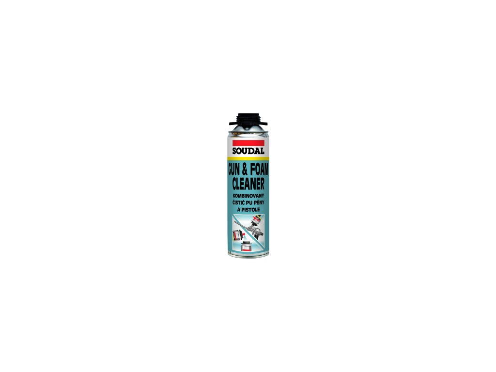 Soudal čistič PU pěny a pistole je kombinovaný čistič pro ošetření aplikační pistole na PU pěny i pro čištění potřísněných ploch pomocí rozprašovače. Účinně rozpouští všechny typy nevytvrzených polyuretanových pěn. Čisticí kapalina používaná ve spojení s pěnou Soudal a pistolovým aplikátorem se závitovým systémem, obsahuje rozpouštědla, může být používán i k běžným trubičkovým pěnám díky přibalené nasazovací rozprašovací trysce. Báze aceton. Konzistence kapalina pod tlakem (5 barů při 20 °C).
