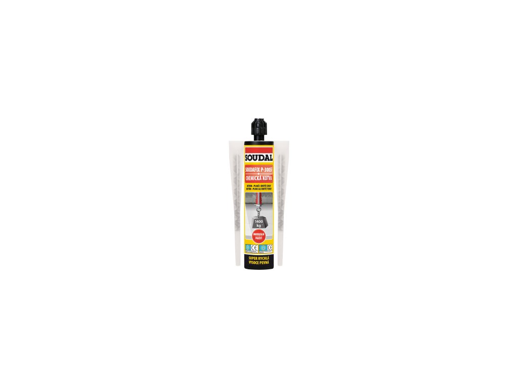 Soudal Soudafix P-300 SF chemická kotva je dvousložková kotvicí hmota pro kotvení závitových svorníků, upevňovacích koncovek, armovacích tyčí, různých profilů atd. bez působení tlaku na okolní materiál. Chemická kotva je vhodná do plných i dutých materiálů jako jsou cihly, beton, trhlinový beton, pórobeton, přírodní kámen, sádrokarton apod. Super rychlé vytvrzení, vysoce pevná, snadná aplikace pomocí běžné pistole, po výměně trysky opakovaně použitelná.