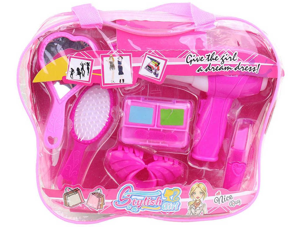 Obsah balení: zrcátko, hřeben, fén, rtěnka, sponka do vlasů, natáčka, líčidla