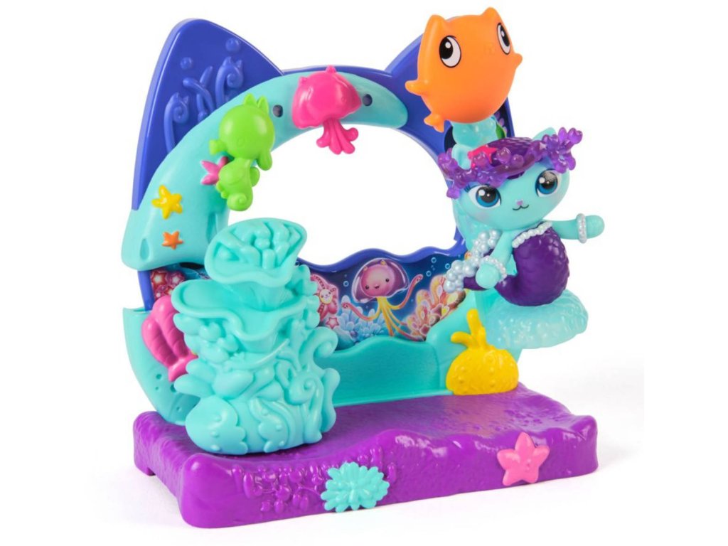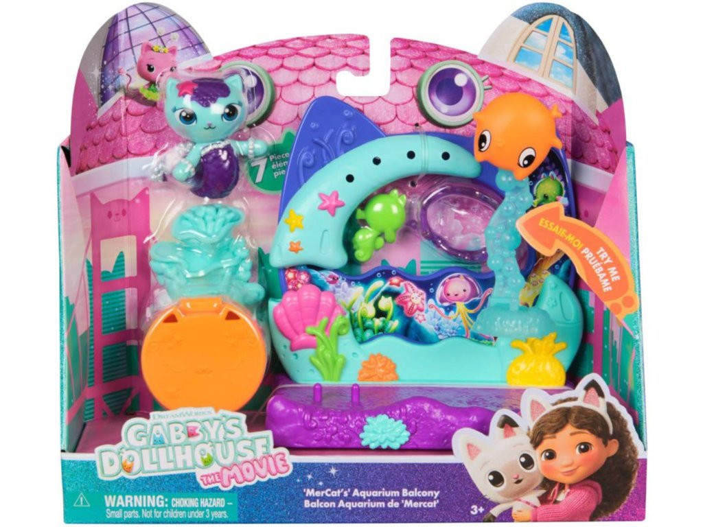 Krásný balkonek použitelný k zavěšení na velký dům Gabby's Dollhouse nebo jako samostatný hrací set. Balkonek má i pohyblivé akční prvky. Obsahuje figurku a doplňěk. Tato položka je v provedení akvárium.