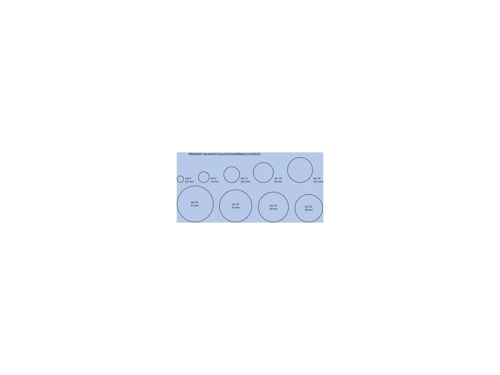 Zatímco u plochých štětců udává rozměr šířku štětce, resp. jeho osazení v palcích, u kulatých štětců jsou velikosti tradičně značeny číslem, které nemá přímou souvislost s průměrem štětce (viz. obr.).