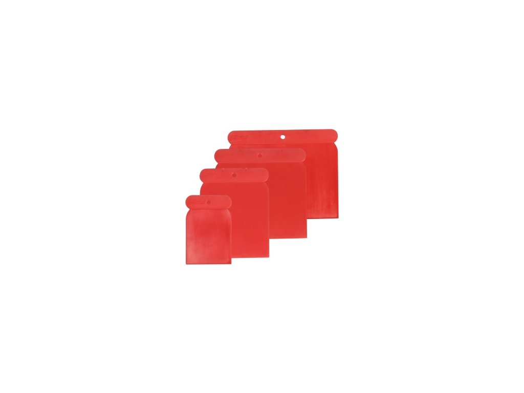 Spokar sada plastových tmelících stěrech o rozměrech 5 cm, 7,5 cm, 10 cm, 12 cm.