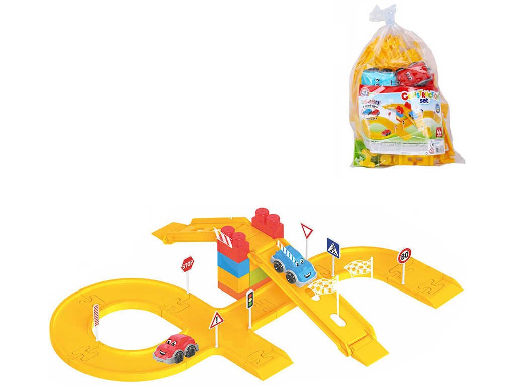 Stavebnice herní set dráha s dopravními značkami + 2x autíčko s očima 44 dílků