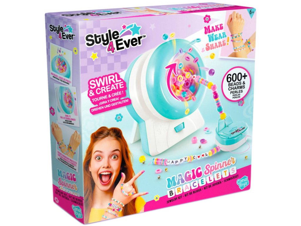 Vytvořte si módní náramky přátelství s touto nádhernou sadou! Sada Style 4 Ever Magic Spinner Bracelets obsahuje rotující navlékač korálků, který na náramek navleče ozdobné korálky v náhodném pořadí. Součástí jsou nitě a stuhy a různé korálky a ozdoby. Funguje na USB kabel. Nejlepší na tomto stroji je jeho otáčecí mechanismus, který vám pomůže sestavit náramky zábavným a snadným způsobem. Stačí si vybrat nitě, umístit korálky a nechat rotující nástroj kouzlit a navrhnout originální náramky s překvapivými kombinacemi. Navíc se o ně můžete podělit se svými přáteli a vytvořit si tak výjimečné vzpomínky s vlastnoručně vyrobenými doplňky.