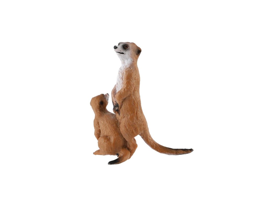 Surikata s mládětem zooted plast 8cm světle hnědá