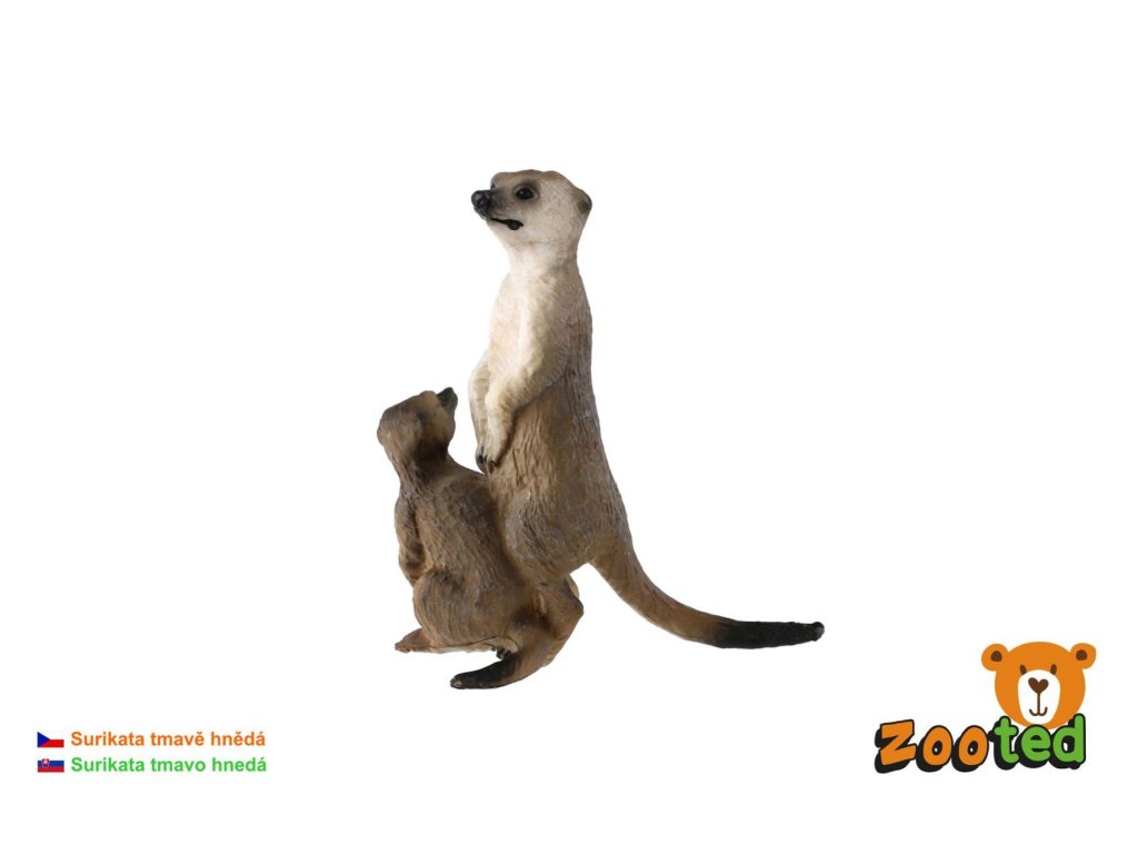 Surikata s mládětem zooted plast 8cm tmavě hnědá