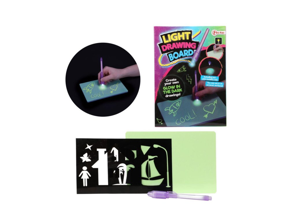 Tento set obsahuje tabulku, speciální pero s neviditelným inkoustem, které je možné použít k psaní tajných zpráv nebo kreslení skrytých obrázků. Inkoust je neviditelný za normálních podmínek, ale po napsání a zhasnutí světla začne inkoust svítit ve tmě, což přináší dětem skvélé překvapení! Součástí balení jsou také předlohy, které mohou děti použít k tvorbě vlastních obrázků nebo k psaní tajných zpráv podle vzorů. Tabulka s perem podporuje kreativitu, zlepšuje jemnou motoriku a zároveň dětem umožňuje objevovat kouzlo neviditelného inkoustu.