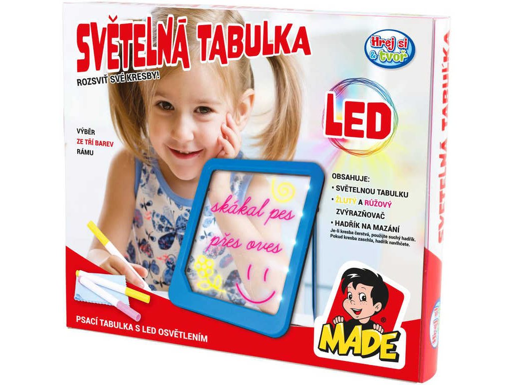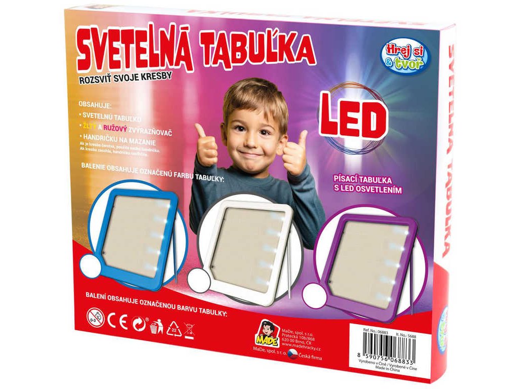 Plastová kreativní tabulka s LED světlem, na baterie, která má pět různých barev světla. Tabulka je ideální pomocník, ať už chcete napsat pouze vzkaz nebo chcete malovat a rozvíjet svou fantazii. Součástí balení je i