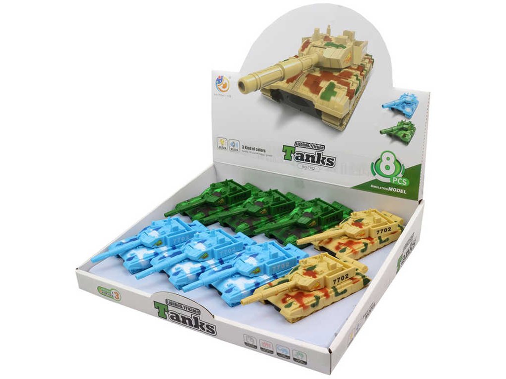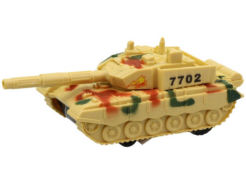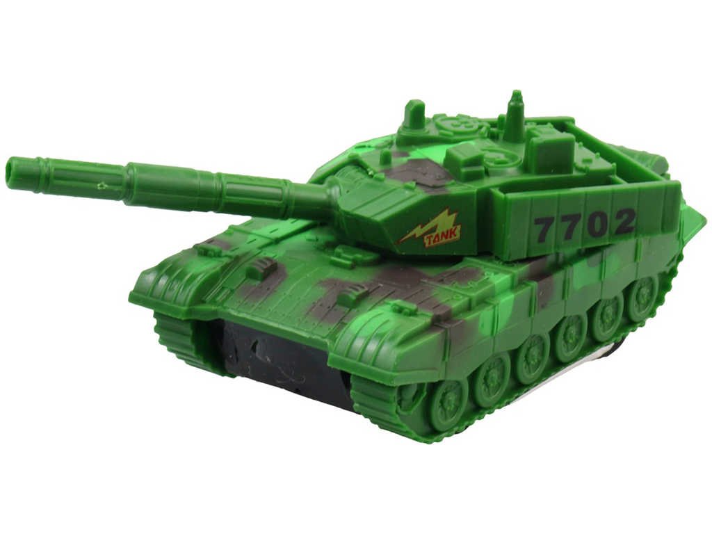 Barevný plastový tank s pohonem na setrvačník. ve třech barevných variantách, pro všechny malé vojáky a bojovníky. Baleno volně. Hračka na baterie, se světlem a zvukem.