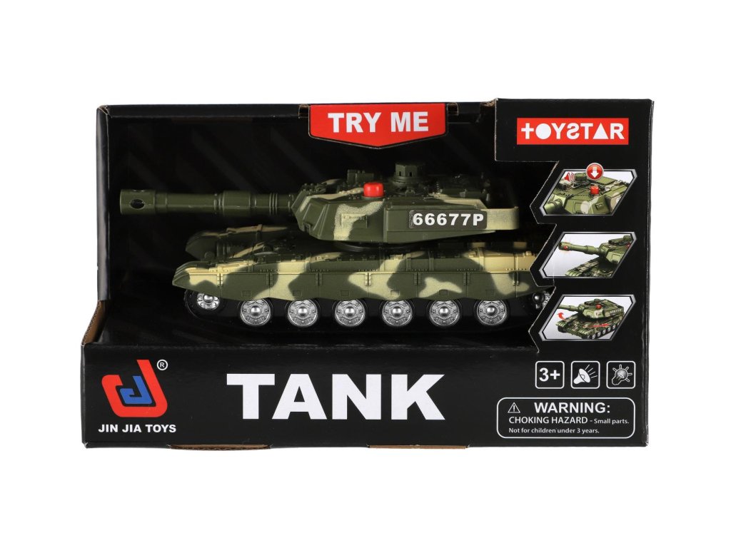 Tank plast 20cm na setrvačník na baterie se světlem se zvukem v krabici 23x14x11cm
