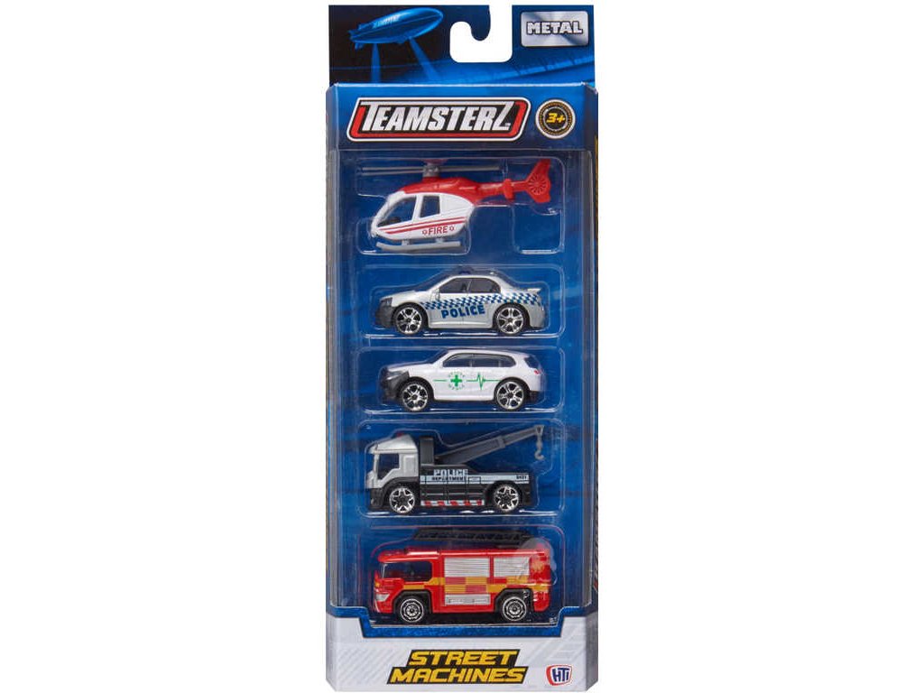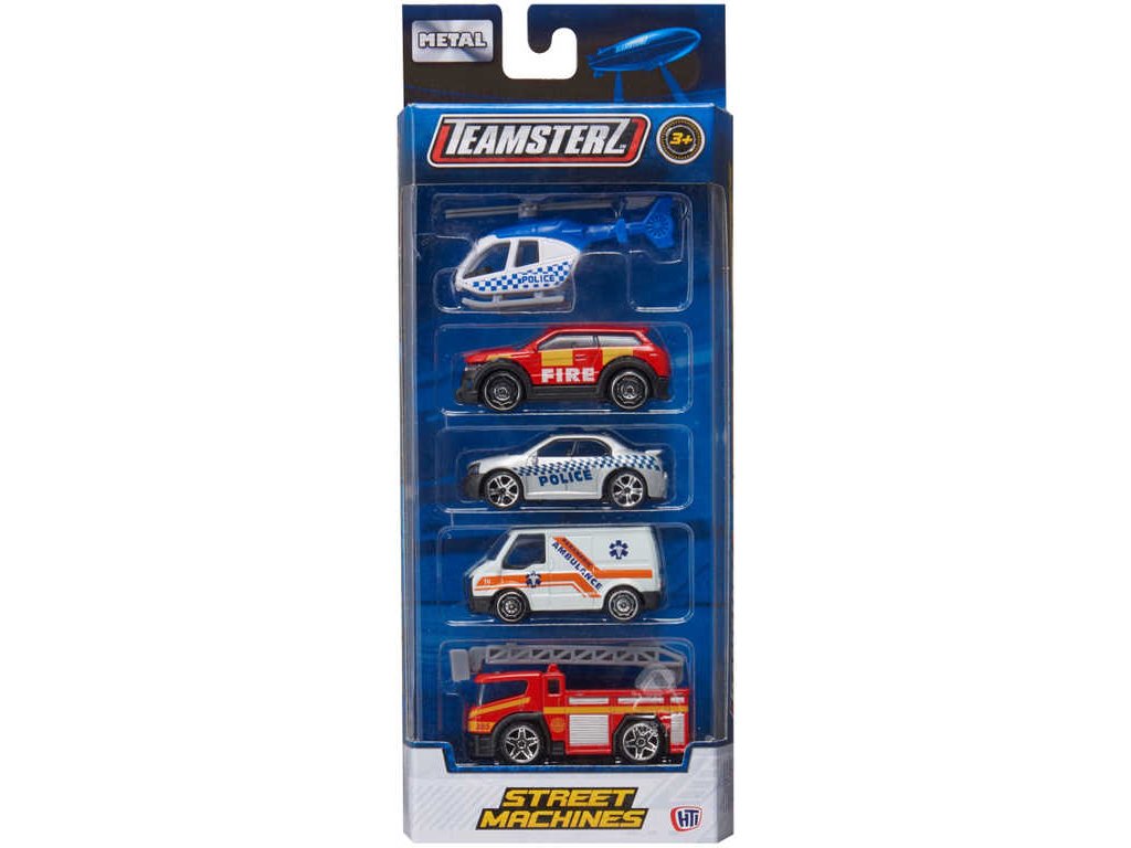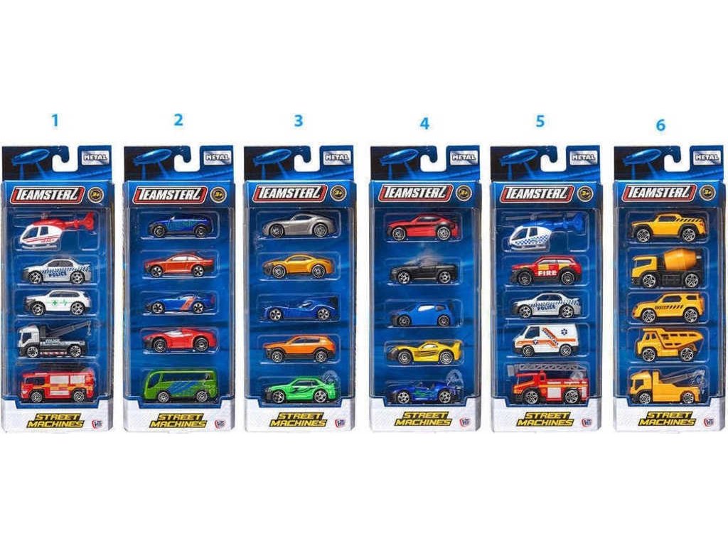 Sada pěti Teamsterz autíček - osobních, stavebních nebo záchranářských. Herní set pěti vozidel z kovu a plastu, v šesti variantách provedení. Street Machines,