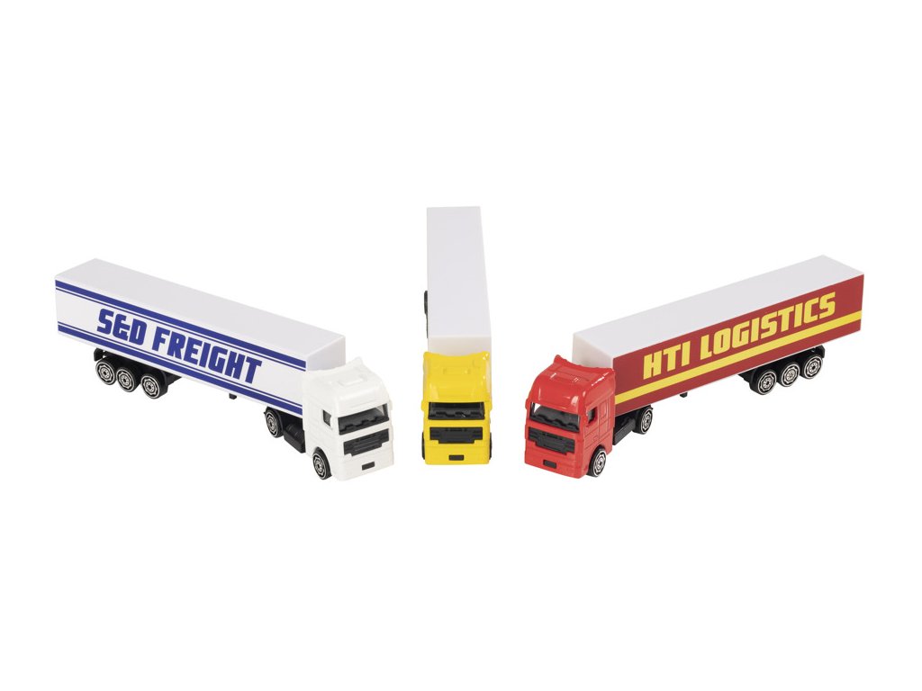 Kontejnerový vůz na volný chod, kamion z kovu a plastu, ve třech variantách provedení. Perfektní dárek pro každého malého nadšeného řidiče, který nabízí hodiny nápadité zábavy! Tento vysoce detailní