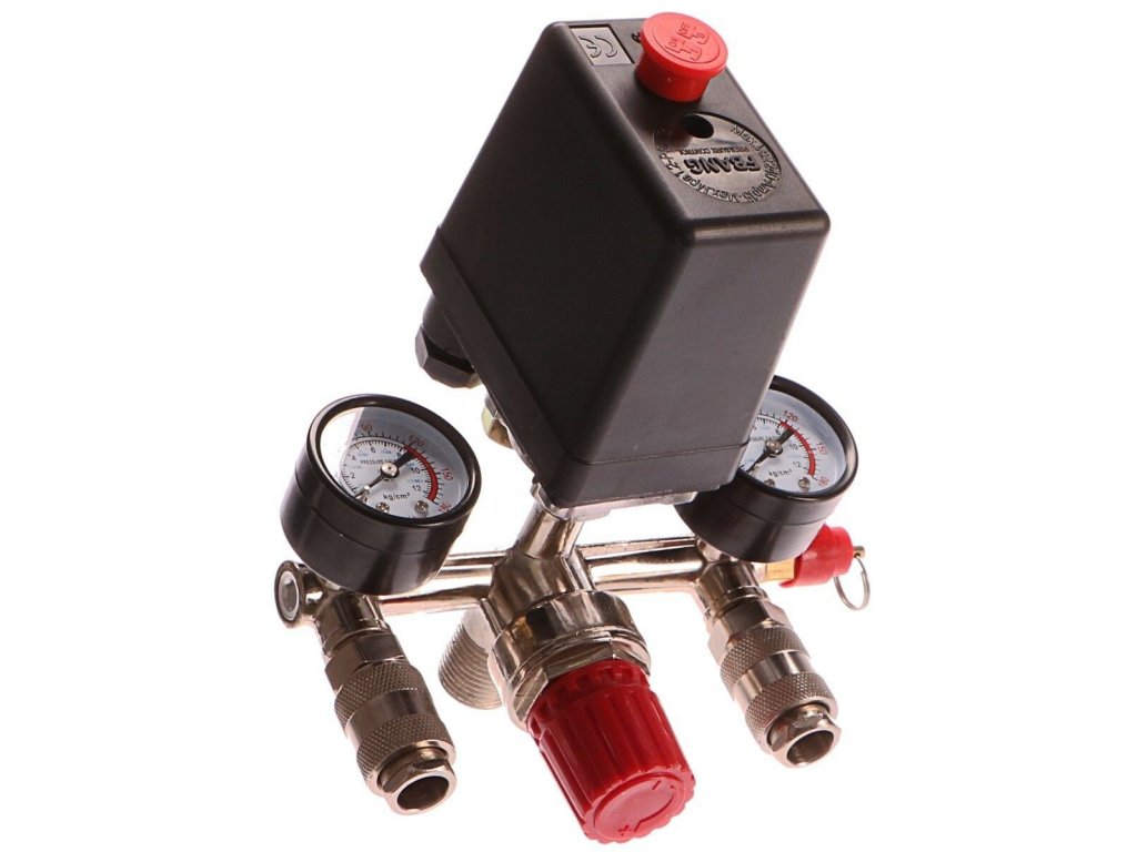 Tlakový spínací ventil + ukazatele tlaku pro vzduchový kompresor, GEKO