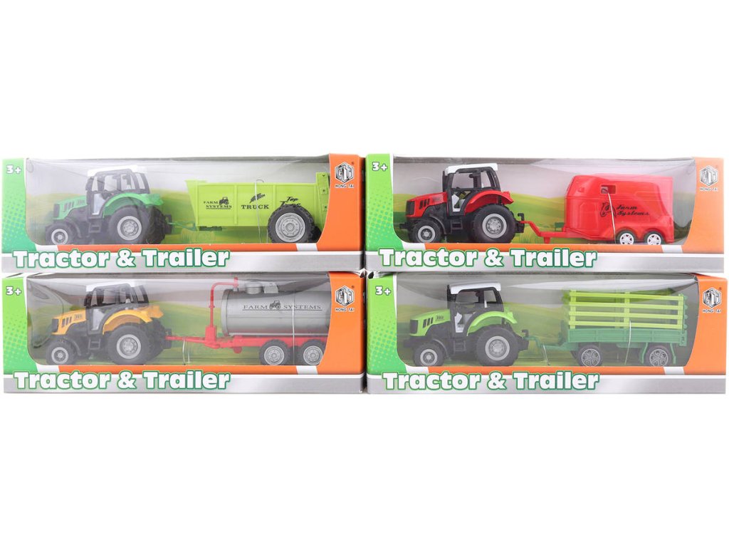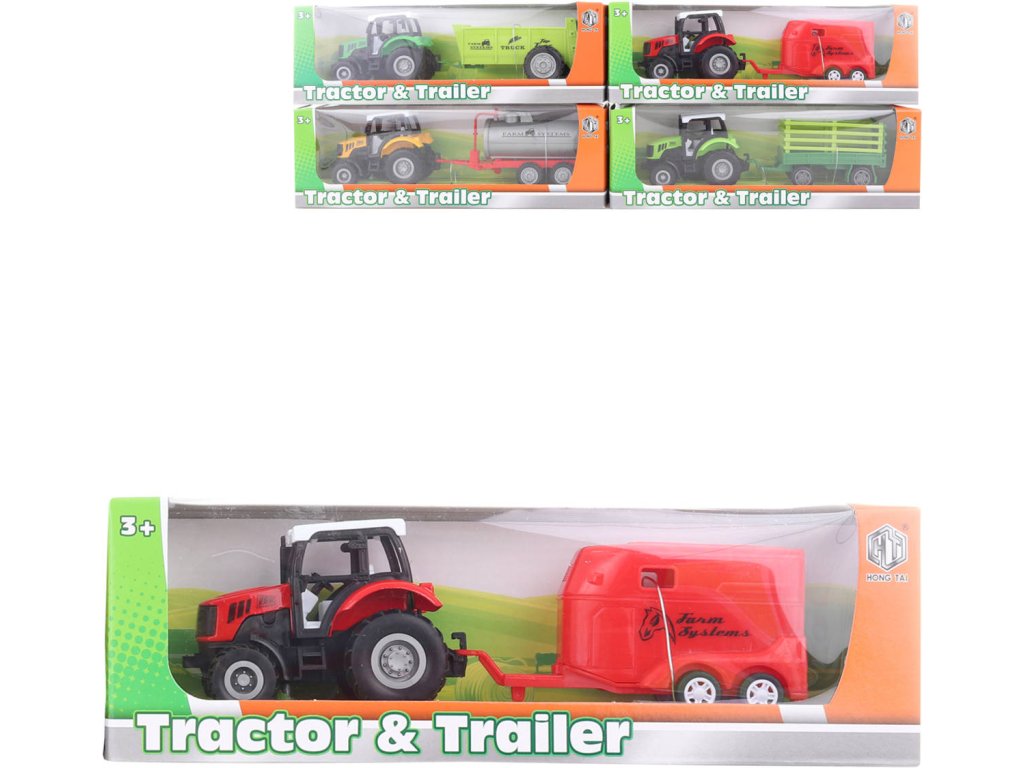 Traktor kovový s přívěsem 23cm 4 druhy v krabici