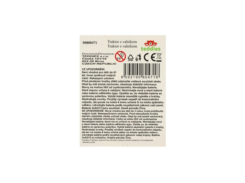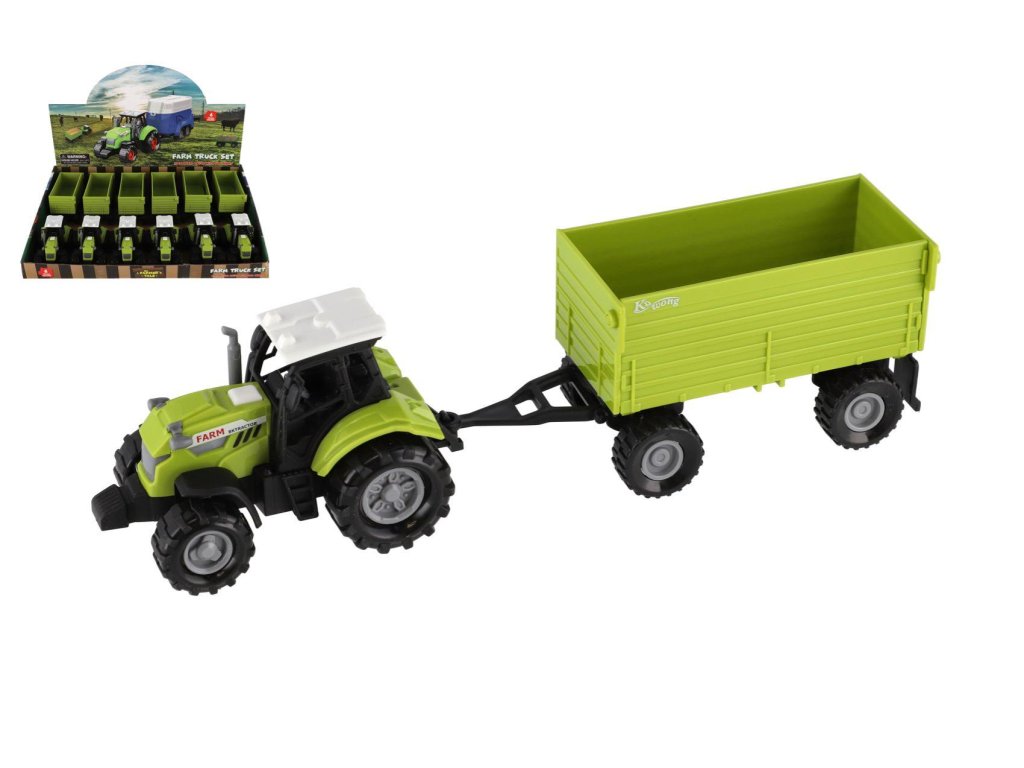 Traktor s valníkem plast 26cm na volný chod na baterie se zvukem, světlem 6ks v boxu