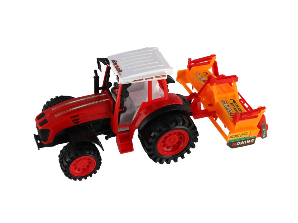 Pro každého malého zemědělce je nepostradatelným, všestranným pomocníkem traktor s přívěsem. Traktor je na setrvačník a je velikosti 46 cm. Nekonečná práce na farmě může začít. Vlek s kombajnovým válcem je možné odpojit.