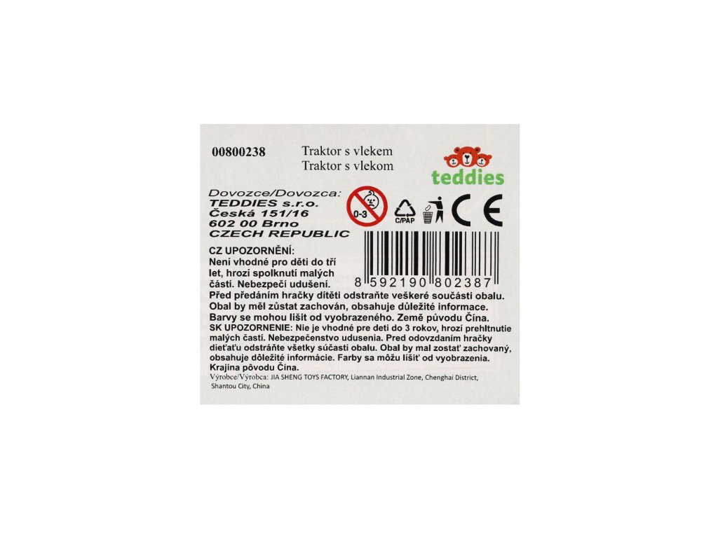 Traktor s vlekem s kombajnovým válcem plast 46cm na setrvačník 2 barvy v blistru