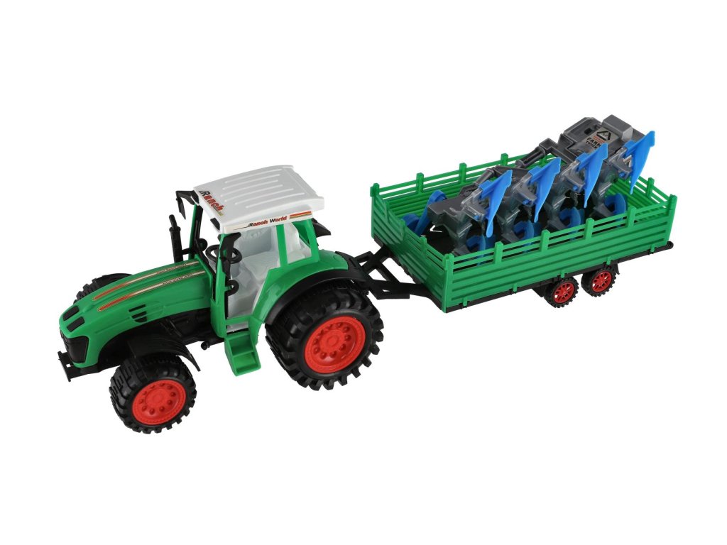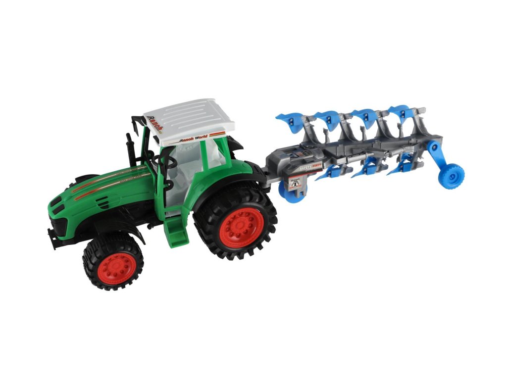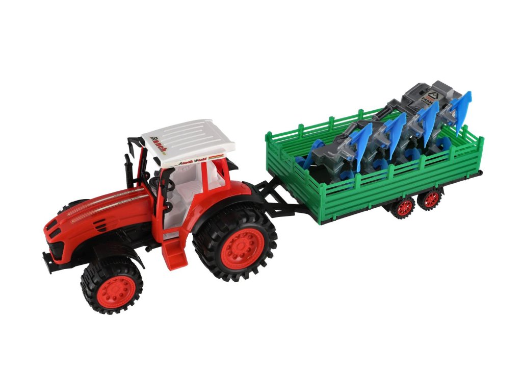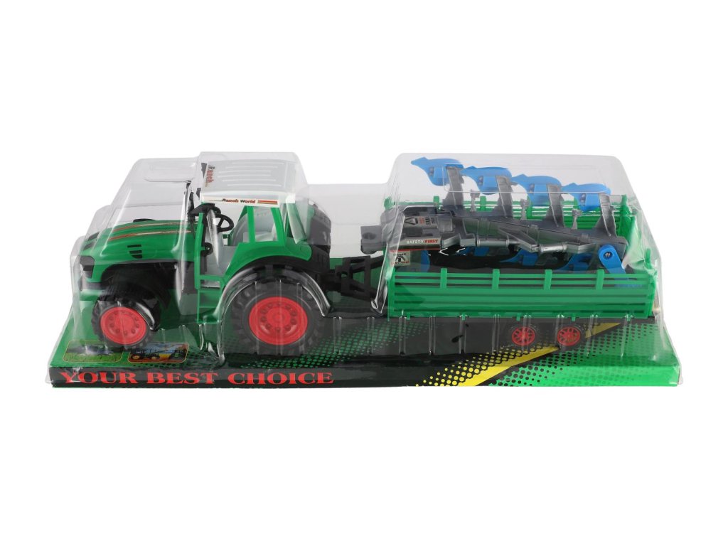 Traktor s vlekem s pluhem plast 53cm na setrvačník 2 barvy v blistru