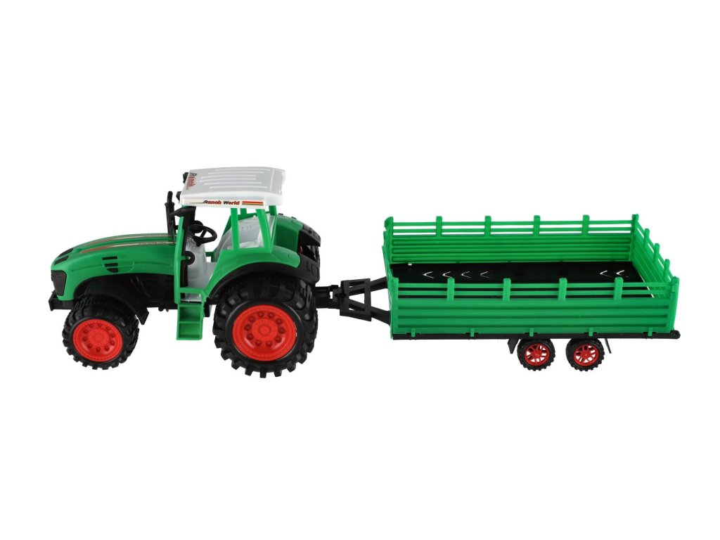 Pro každého malého zemědělce je nepostradatelným, všestranným pomocníkem traktor s vlekem. Traktor je na setrvačník a je velikosti 53 cm. Nekonečná práce na farmě může začít. Vlek je možné odpojit.