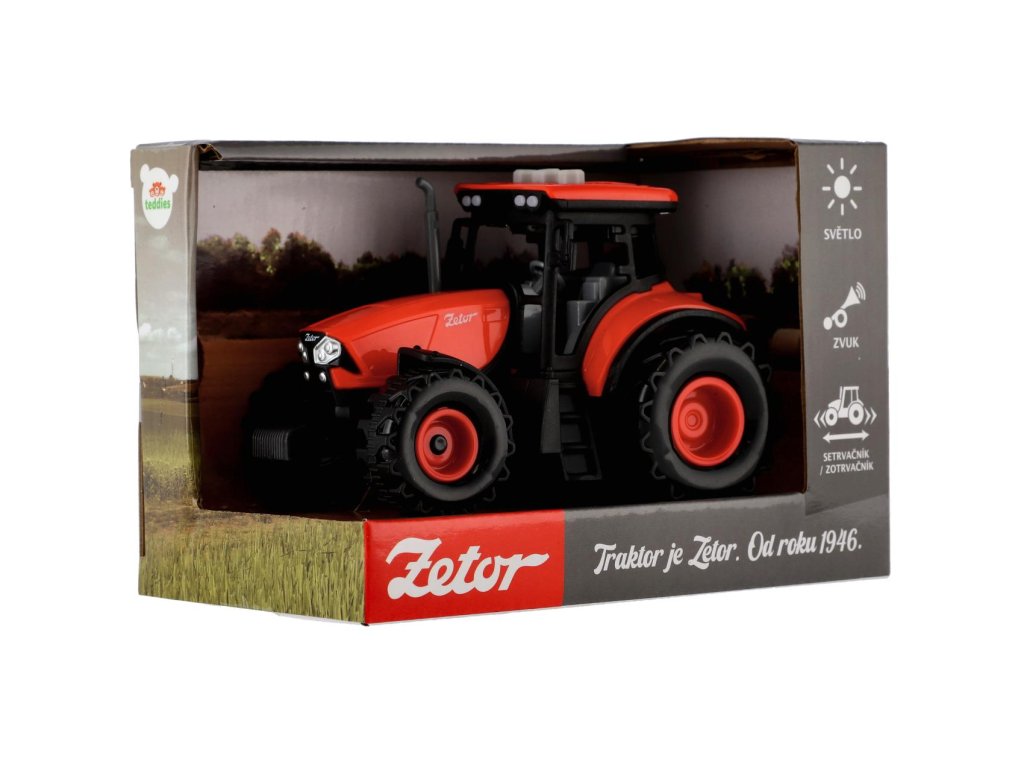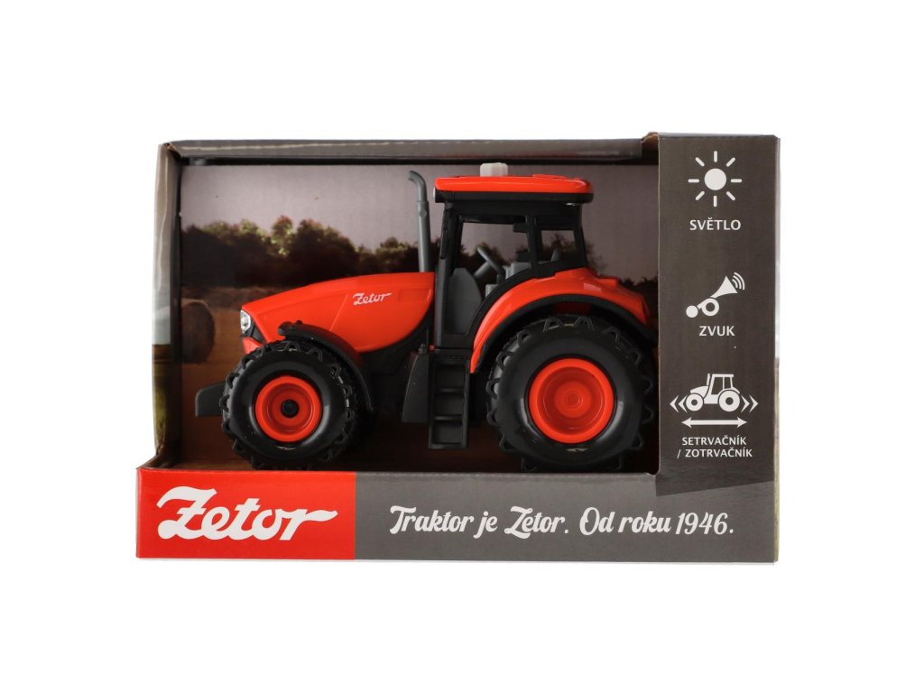 Traktor Zetor plast 9x14cm na setrvačník na bat. se světlem se zvukem v krabici 18x12x10,5cm