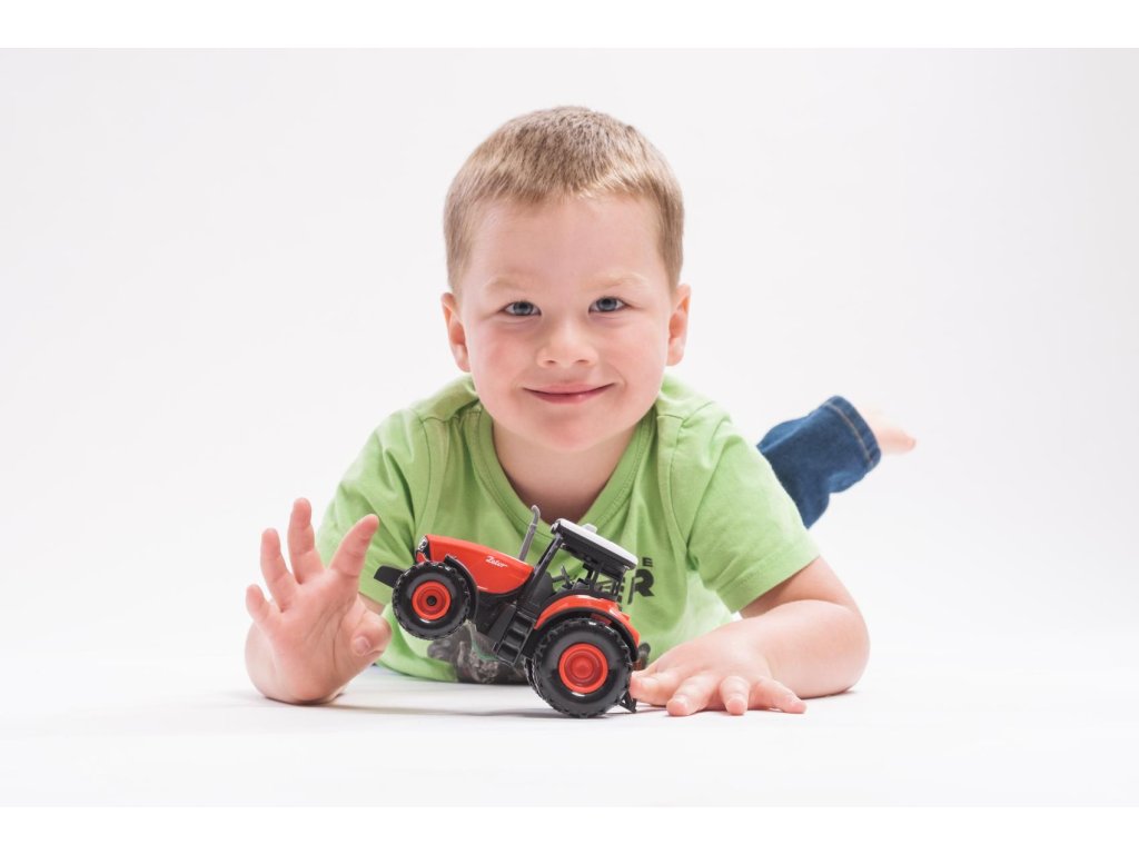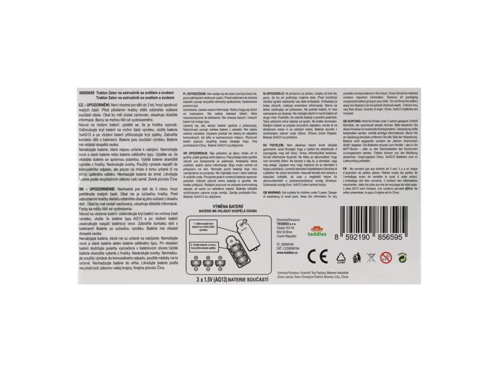 Krásný model zemědělského traktoru Zetor s dlouholetou tradicí, kterou musí milovat snad každý. Vyrazte na pole, jako správný farmář s pořádným traktorem se světlem a zvukem! Zmáčkněte tlačítko a uslyšíte zvuk couvání, druhé tlačítko zatroubí a třetí startuje motor. Traktor je na setrvačník. Traktor zajisté okouzlí každého milovníka traktorů. Hračka je na baterie 3x AG13, které jsou součástí balení.