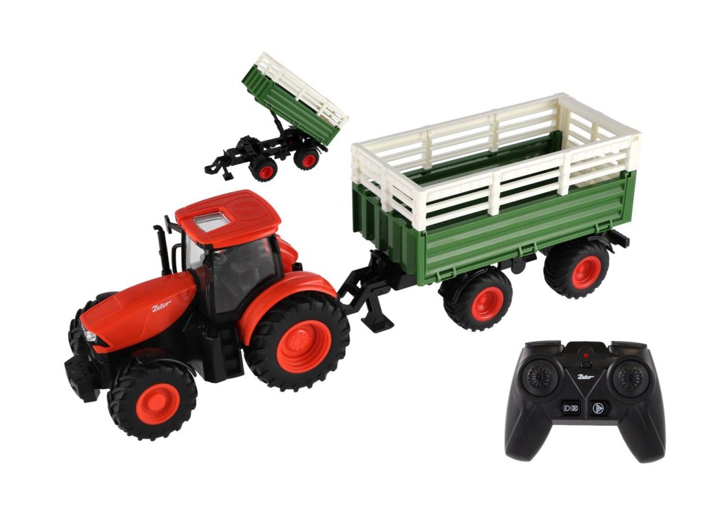 Krásný model zemědělského traktoru Zetor s dlouholetou tradicí, kterou musí milovat snad každý. Vyražte na pole s pořádným traktorem se světlem a zvukem! Traktor s vlekem je nepostradatelný pomocník pro každého malého farmáře! Vlek můžeš jednoduše odpojit a traktor využít k dalším pracím. Traktor jezdí na dálkové ovládání na frekvenci 2,4 GHz. Zmáčknutím tlačítek traktor vydává reálné zvuky a svítí mu světla. Hračka je na baterie 2x AA do ovladače a na dobíjecí pack, které jsou součástí balení.