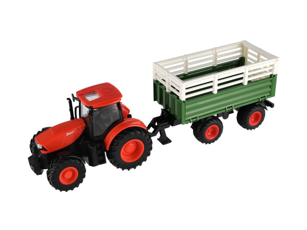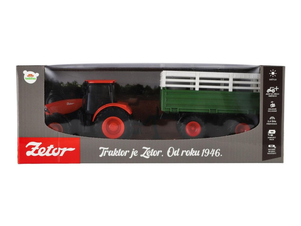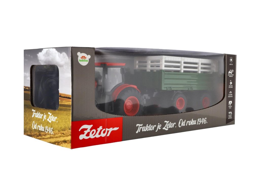 Traktor Zetor RC s vlekem plast 42cm 2,4GHz dobíjecí pack + baterie se zvukem v krabici