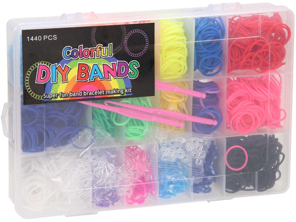 Upleť si z gumiček náramek či jiný doplněk za pomocí této sady 1440ks barevných gumiček, v balení se třemi háčky na pletení a svorkami k zakončení. V sadě najdeš gumičky různých barev. Baleno v