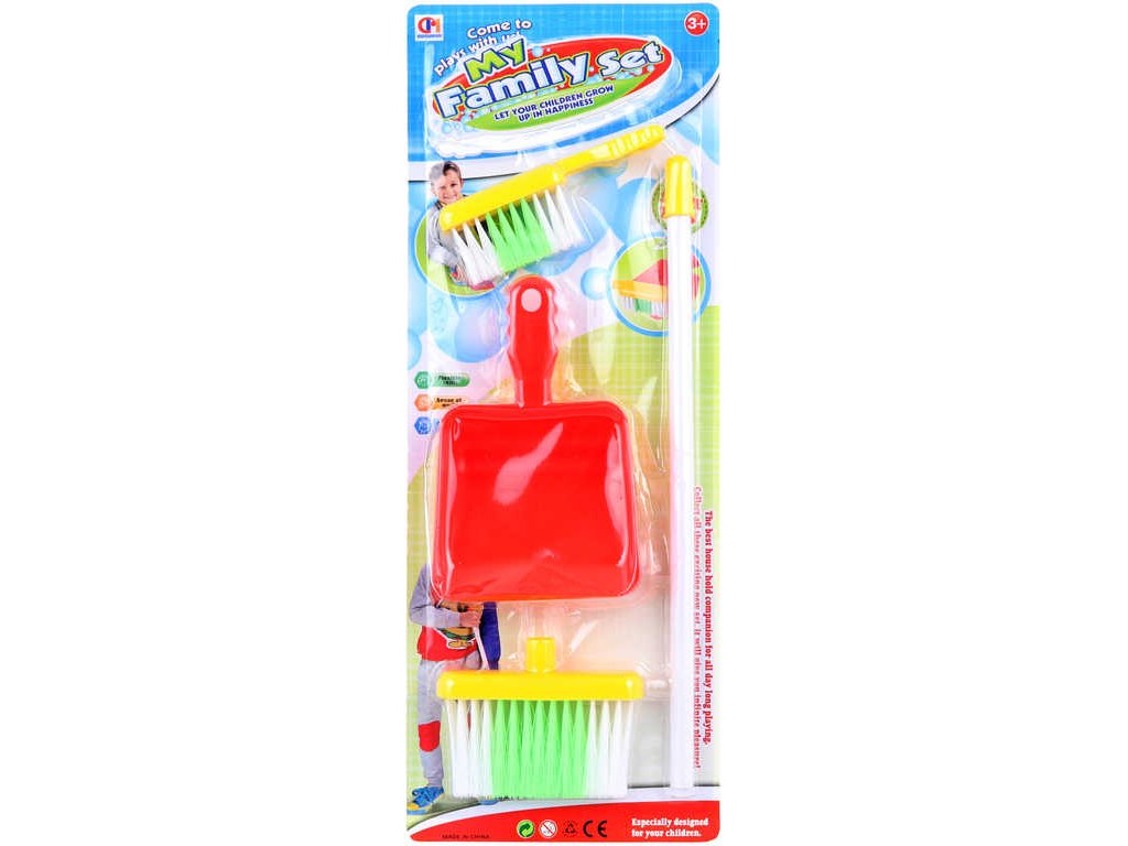 Dětský plastový úklidový set obsahující velký smeták, menší smetáček a lopatku v červené barvě. Tuto sadu uvítá každá malá hospodyňka či pomocnice v domácnosti. Zametání je nenáročné, takže se