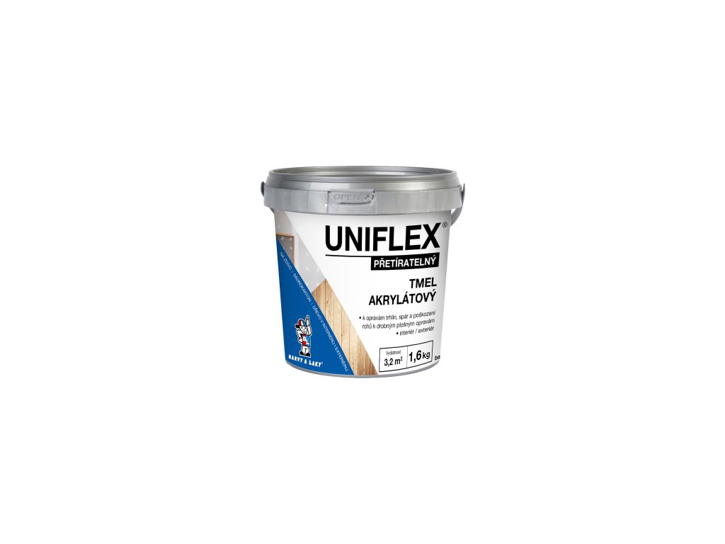 Akrylátový pastovitý tmel k drobným opravám zdiva, sádrokartónu a dřeva v interiéru i exteriéru. Uniflex tmel či lepidlo určené na tmelení středních a větších nerovností, vynikající přilnavost na většině povrchů, především na kov, ocel, kámen, beton, dřevo atd., přetíratelný, pro vnitřní i venkovní použití.