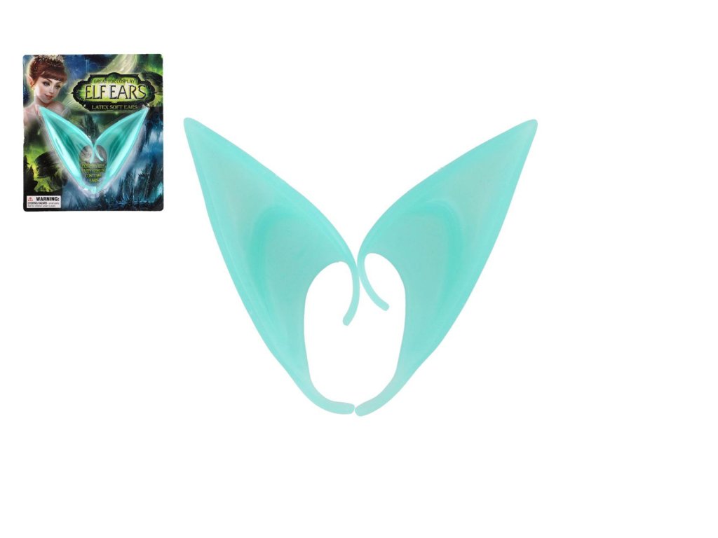 Uši/ucho elfí 2ks latex 12cm tyrkysové na kartě karneval