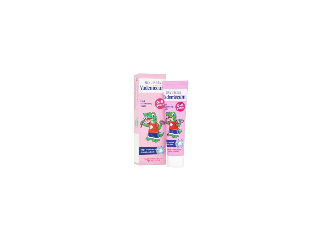 Zubní pasta Vademecum Junior Jahoda je určená pro děti ve věku 0-6 let. Je pro ně vhodná zejména díky svému nízkému obsahu fluoridu.