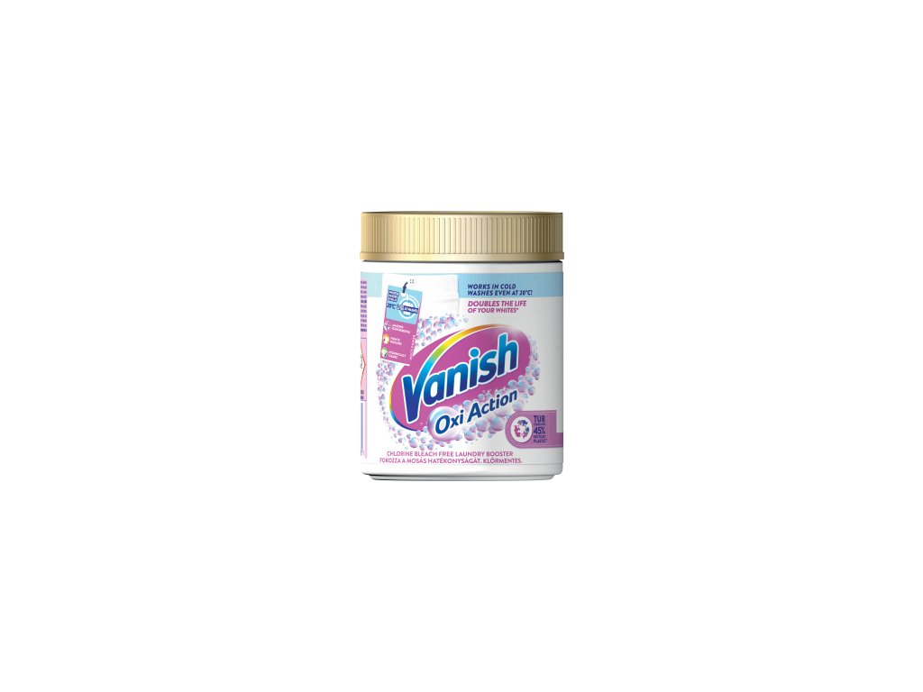 Vanish Oxi Action prášek na bělení a odstranění skvrn je speciláně navržený tak, že vytváří molekuly aktivního kyslíku aby vaše bílé prádlo bylo bělejší a navíc efektivně odstraňovalo skvrny. Vhodný pro běžné každodenní prádlo jako je např. bavlna.