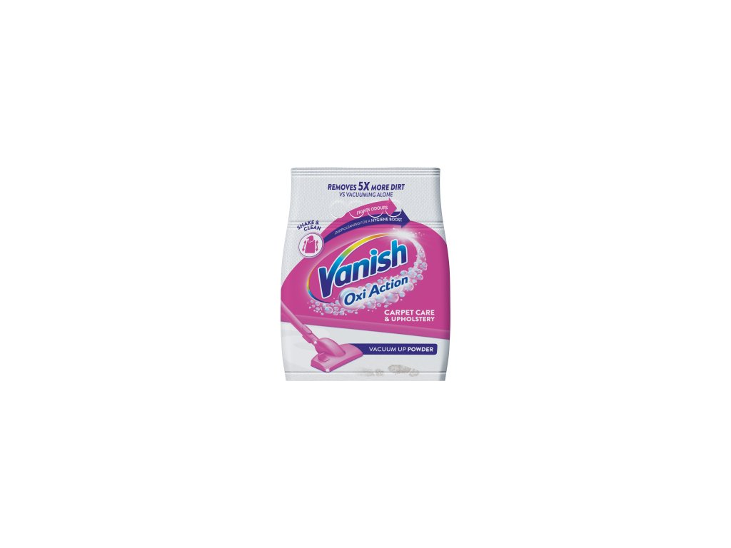 Vanish Shake & Clean vlhký prášek na čištění koberců 650 g. Prášek je výborný na koberce a čalounění. Důkladně vyčistí koberec, odstraní odolné skvrny, zápach a zažranou špínu zachycenou hluboko ve vláknech, obnoví koberec a dodá svěžest. Při působení rychle zasychá a cca po 20 minutách je koberec suchý a čistý. Vanish byl vyvinut pro snadné čištění koberců a čalounění v domácnosti.