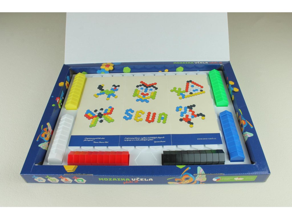 Stavebnice mozaikového typu Včela zdobí úl je nejen skvělá hračka, ale i výborná vzdělávací pomůcka pro předškoláky. Děti předškolního věku si procvičí nejen svoji motoriku, ale naučí se abecedu (Včela se učí) nebo základy počítání (MOSAIC MAXI/2). Základ stavebnice tvoří podložka, která připomíná včelí plástve. Na tuto podložku se skládají různobarevné dílky stavebnice a děti si mohou vytvořit různé obrázky dle své fantazie nebo přiloženého návodu. Všechny stavebnice Mosaic MAXI jsou vzájemně plně kompatibilní, takže ji můžete neustále rozšiřovat a doplňovat o nové dílky.