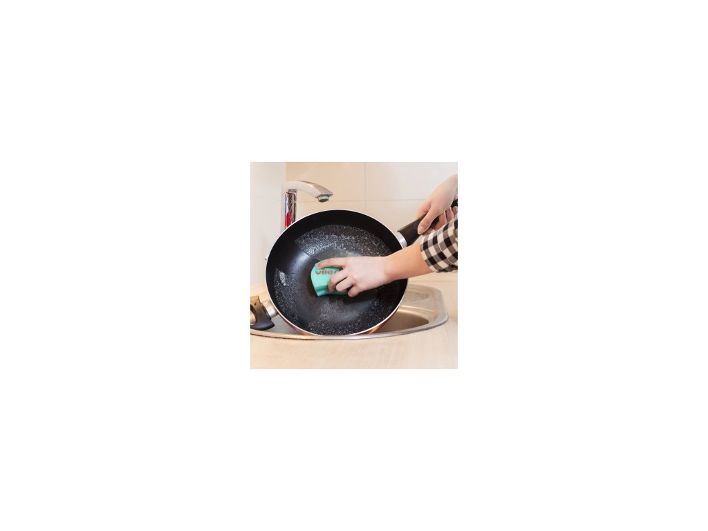 Revoluční typ houbiček s ergonomickým tvarem. PUR aktivní povrch odstraní zaschlou špínu bez poškrábání povrchu. S chráničem nehtů. Ideální pro drahé nádobí, jemné povrchy (teflon) a sklokeramické desky.
