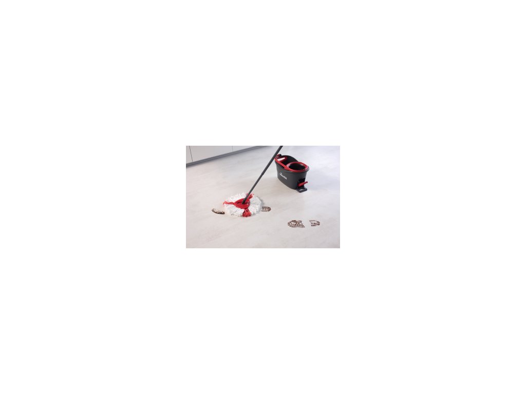 Lehký kbelík: pro lepší přenášení v domácnosti. Podélná rukojeť: pro vyváženou manipulaci a lepší stabilitu. Čelní otvor: pro pohodlnější a intuitivní vyprázdnění kbelíku. Díky pedálu není potřeba námahy při ždímání, trojúhelníkový tvar vám zajistí snadný úklid v rozích! Dokonale vyždímaný mop zanechá vaší podlahu rychle suchou. Snadná výměna náhradní hlavice, mycí návlek lze prát na 60 °C.