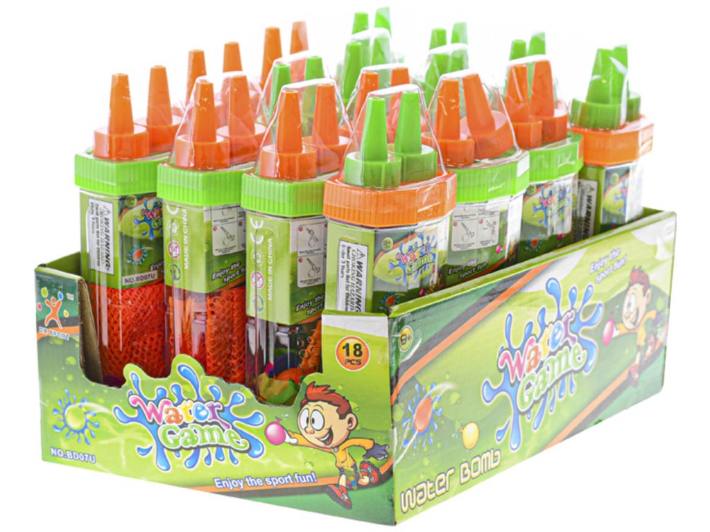 Vodní bomby, jsou dětské nafukovací balónky (nebo míčky dobře nasávající vodu), které se po naplnění vodou / nasáknutí stávají municí pro osvěžující mokrou bitvu v létě, atrakcí v cirkuse, osvěžující zábavou na dětském odpoledni, veselou pomůckou při soutěžích a hrách. Jsou to oblíbené vodní hračky dětí v letních dnech, na dovolené, se kterými si užijete spoustu zábavy a které si vaše děti zaručeně oblíbí. Hra je jednoduchá, vodní bomba se naplní (nafukovací bomby) nebo nechá nasáknout (textilní - houba - molitanová náplň) potřebným množstvím vody, zamíří se a hodí ... z vodní bomby za letu a při dopadu stříká voda - jedná se o veselou a zábavnou hračku!
