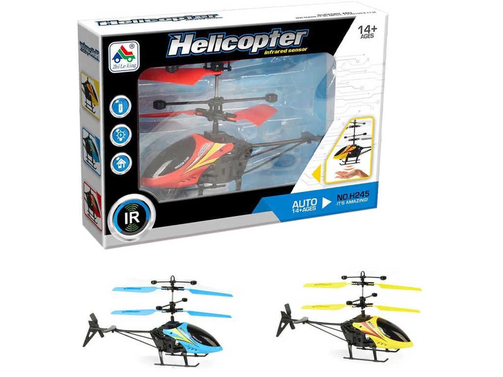 Lehké plastové vznášedlo - helikoptéra, která se ovládá pohybem ruky. Součástí balení je i USB dobíjecí kabel. Vrtulník ve třech barevných variantách. Hračka na baterie, se světlem. Baleno v krabici s