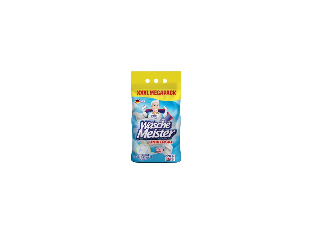 Prací prášek z Německa Wäsche Meister Universal je vhodný na praní bílého a stálobarevného prádla. Prací prášek Wäsche Meister je dobře rozpustný ve vodě. Nezpůsobuje alergie, nedráždí pokožku. Po vyprání v pracím prášku Wäsche Meister bude Vaše prádlo provoněné svěží vůní.