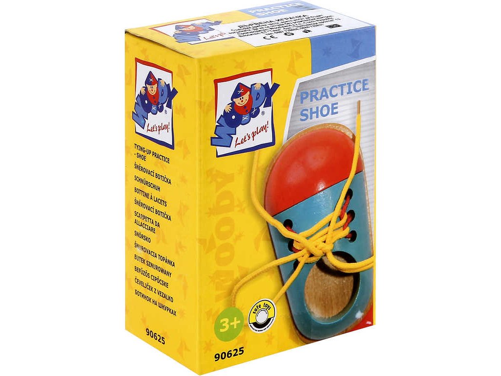 Šněrovací botička, na které se dítě učí správně si zavazovat tkaničky. Velmi vhodné pro manuální zručnost a procvičování trpělivosti dítěte.