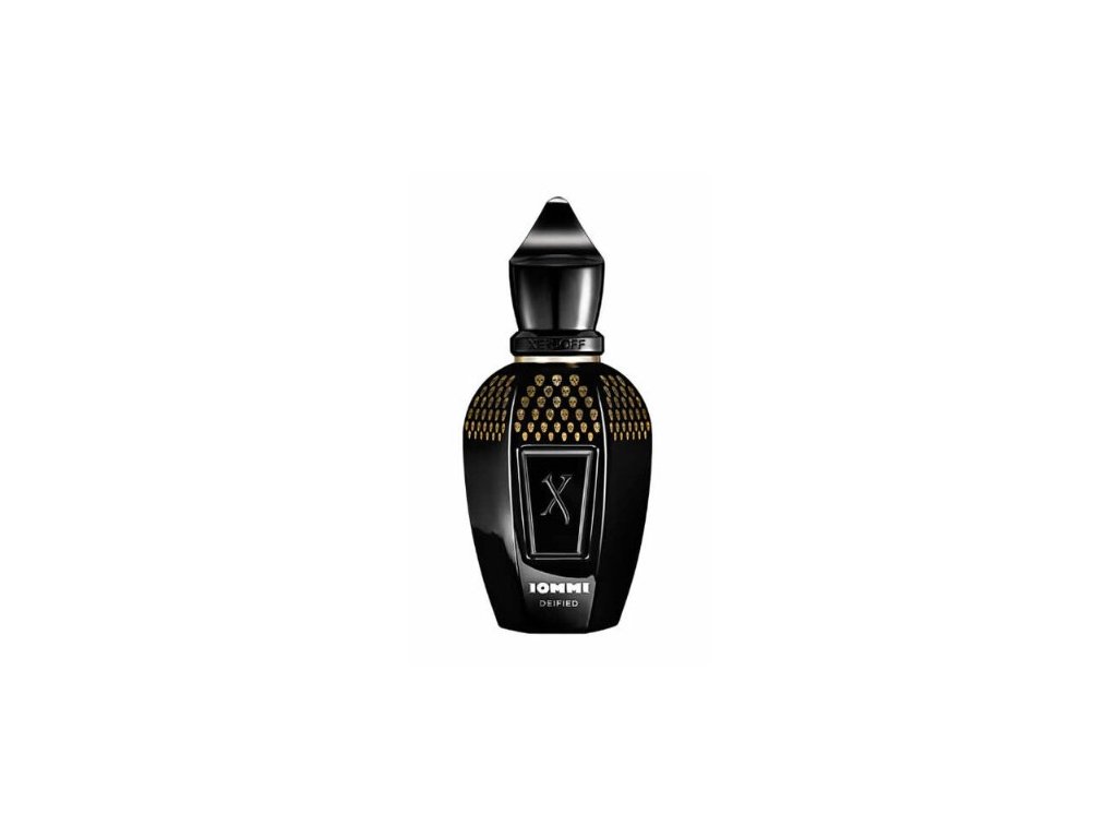 Tony Iommi Deified z kolekce Blend Collection značky Xerjoff je kožený parfém pro muže i ženy. Blend Collection spojuje kreativitu se smysly a vytváří zcela novou realitu. Tato kolekce překračuje hranice reality a otevírá nekonečné možnosti spojením hudby, umění i parfumérství. Nezapomenutelný otisk zanechává spolupráce rockového kytaristy Tonyho Iommiho a zakladatele značky Xerjoff Sergia Moma. Naprosto jedinečný dekadentní zážitek založený na dualitě kůže a koření vás přenese do paralelního vesmíru. Úvodní tóny svěžího jablka, šafránu a intenzivní skořice se snoubí s hříšně svůdným spojením kůže a růže – duo, které je zahalené do zemité auty pačuli, papyru, mechu a pižma.