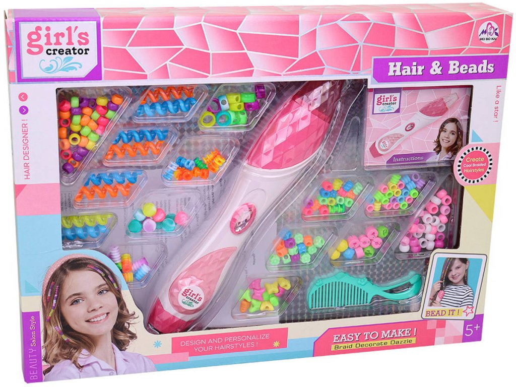 Kreativní set pro všechny malé parádnice a kadeřnice. Ozdob si vlasy barevnými korálky a dalšími ozdobami! S tímto korálkovačem na zaplétání korálků a hřebenem to bude hračka.