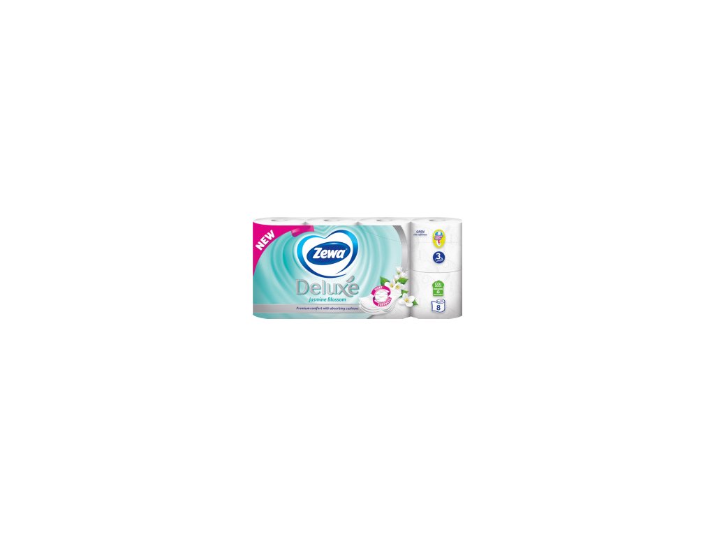 Bílý 3vrstvý toaletní papír ZEWA s elegantní barvou slonové kosti a s jemnou vůní kvetoucího jasmínu. I díky tomu se stal opravdovým favoritem v mnoha domácnostech. Logo Zewa potvrzuje na tomto jemném a zároveň pevném papíru proslulou kvalitu značky. Řada Deluxe je vyráběna z recyklovaného papíru.