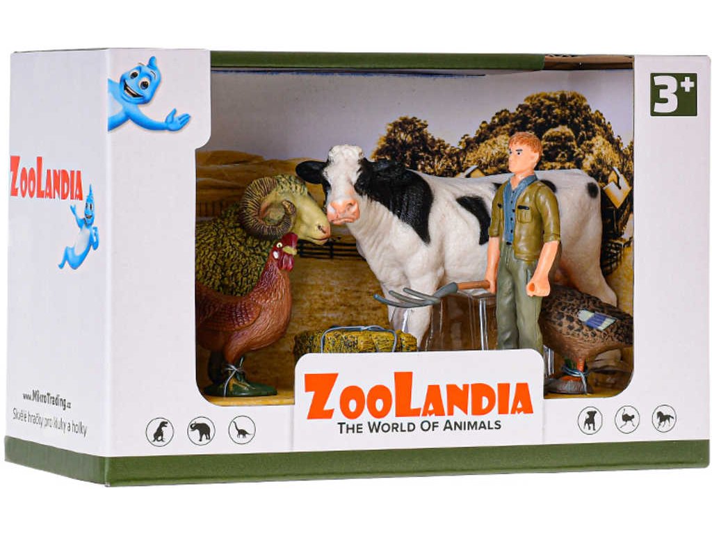 Zoolandia farma herní set zvířátka 4ks s farmářem a doplňky plast