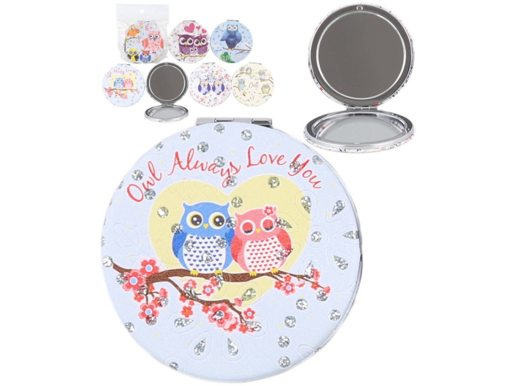 Zrcátko kulaté skládací sovičky 7cm 6 druhů v sáčku